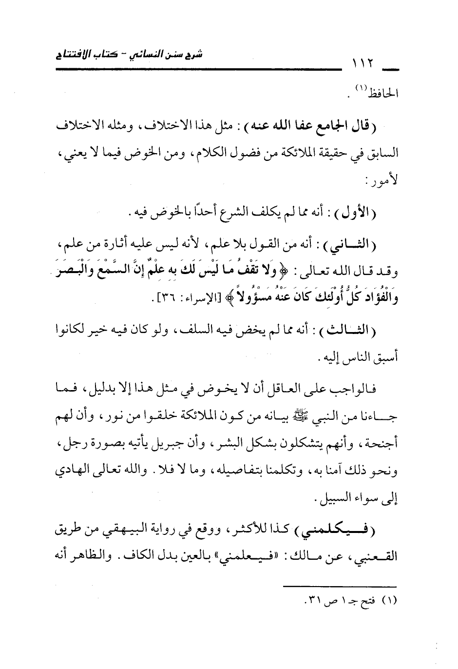 (قال الجامع عفا الله عنه): مثل هذا الاختلاف، ومثله الاختلاف السابق في حقيقة الملائكة من فضول الكلام، ومن الخوض فيما لا يعني، لأمور: