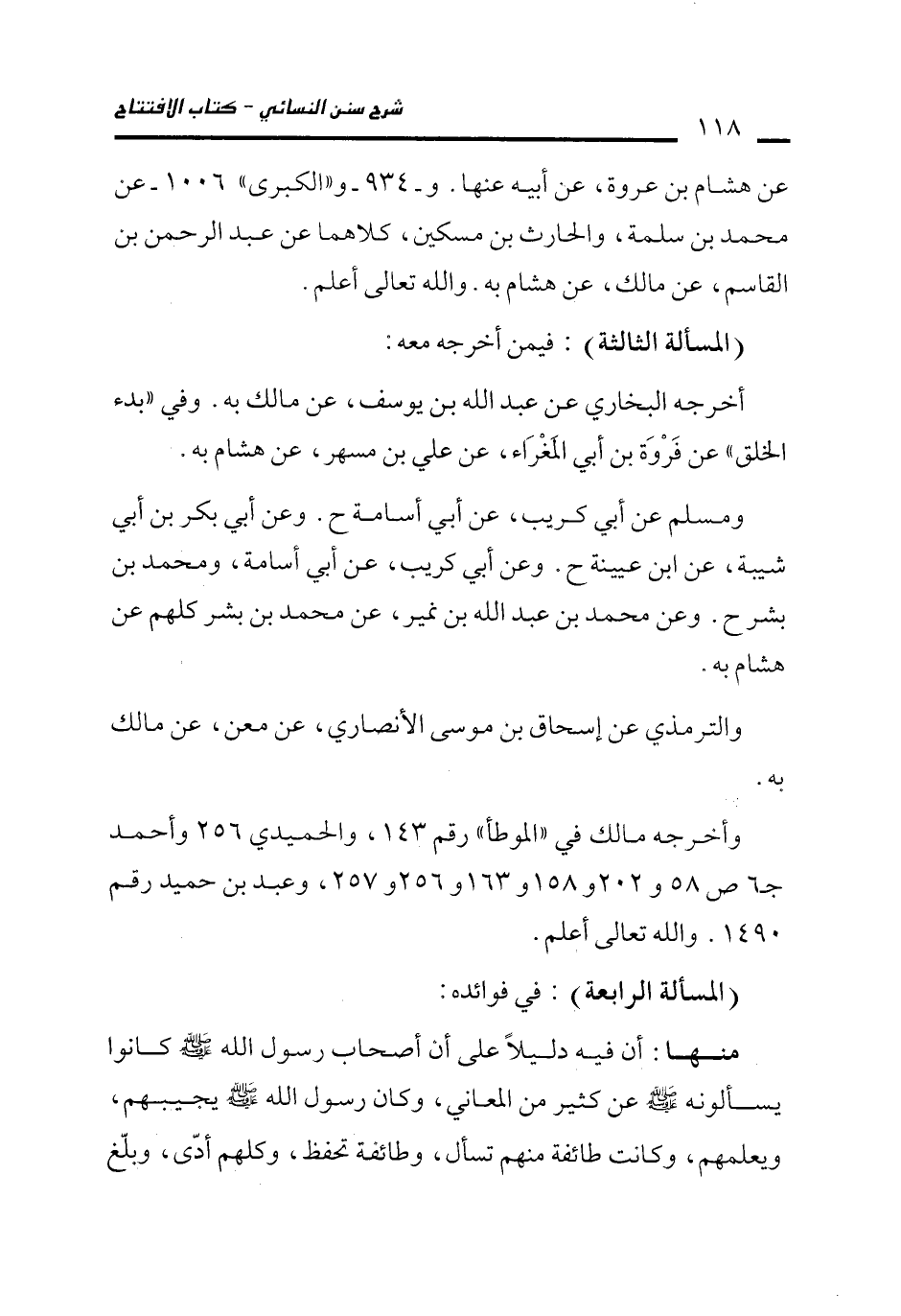 عن هشام بن عروة، عن أبيه عنها. و -934 - و"الكبرى" 1006 - عن محمد بن سلمة، والحارث بن مسكين، كلاهما عن عبد الرحمن بن القاسم، عن مالك، عن هشام به، والله تعالى أعلم.