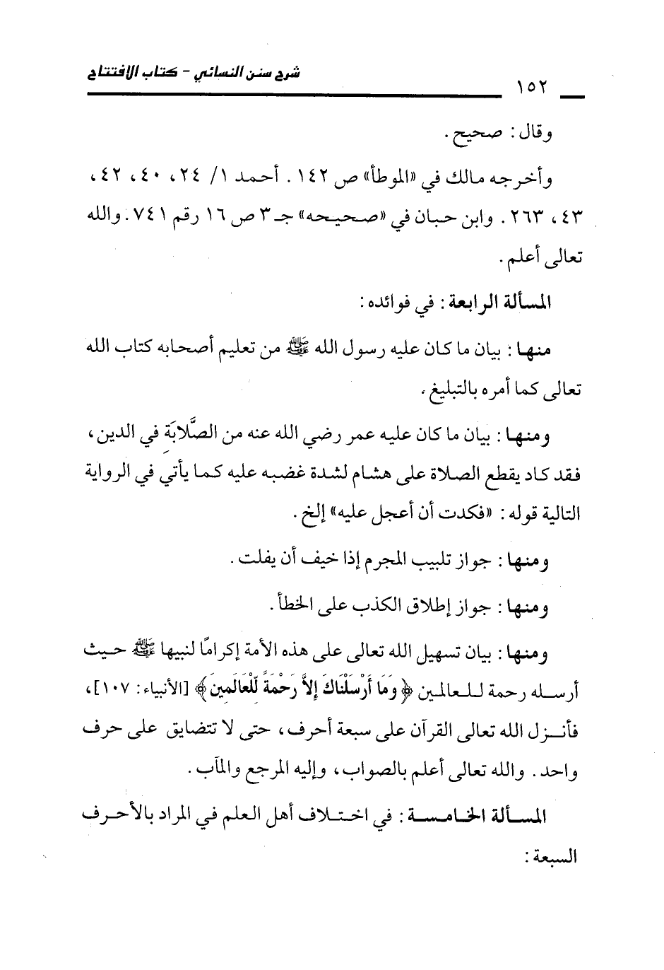 ومنها: بيان تسهيل الله تعالى على هذه الأمة إكرامًا لنبيها - صلى الله عليه وسلم - حيث أرسله رحمة للعالين {وَمَا أَرْسَلْنَاكَ إِلَّا رَحْمَةً لِلْعَالَمِينَ} [الأنبياء: 107]، فأنزل الله تعالى القرآن على سبعة أحرف، حتى لا تتضايق على حرف واحد. والله تعالى أعلم بالصواب، وإليه المرجع والمآب.
