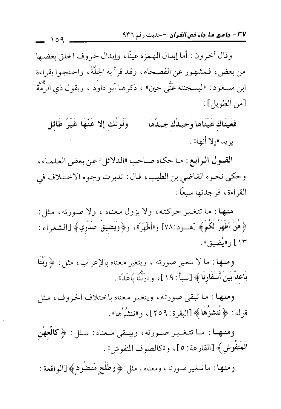 ومنها: ما تتغير صورته، ومعناه، مثل: {وَطَلْحٍ مَنْضُودٍ} [الواقعة: