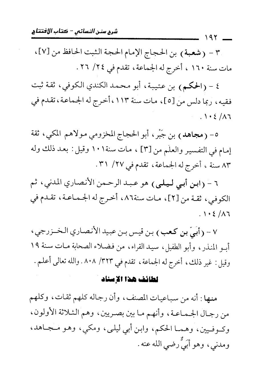 6 - (ابن أبي ليلى) هو عبد الرحمن الأنصاري المدني، ثم الكوفي، ثقة من [2]، مات سنة 86، أخرج له الجماعة، تقدم في