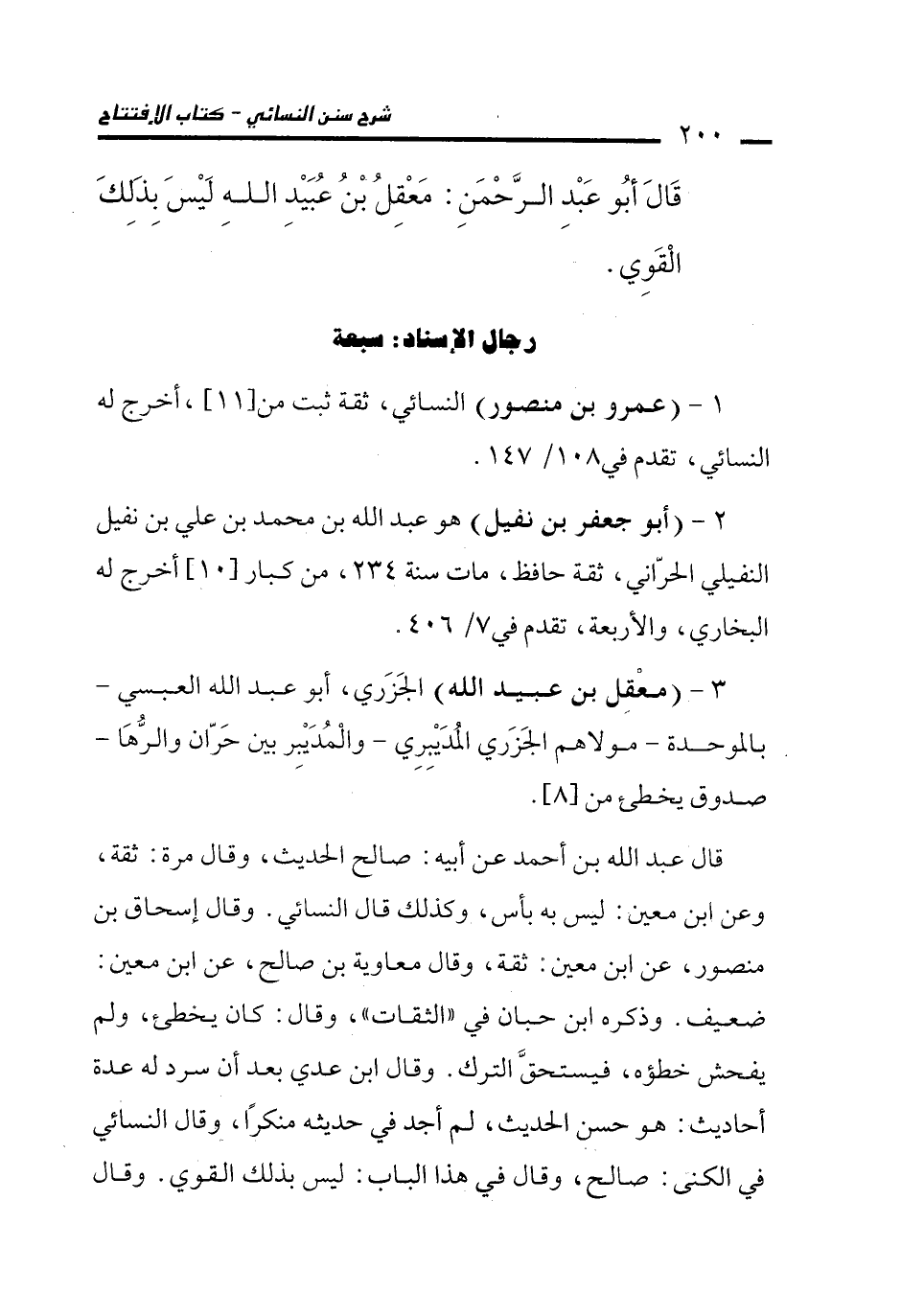 قَالَ أَبُو عَبْدِ الرَّحْمَنِ: مَعْقِلُ بْنُ عُبَيْدِ اللَّهِ لَيْسَ بِذَلِكَ الْقَوِيِّ.