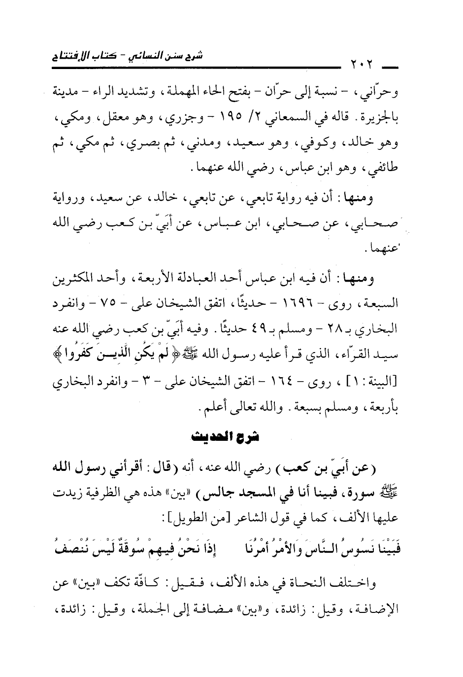 (عن أبَيّ بن كعب) رضي الله عنه، أنهأ (قال: أقرأني رسول الله - صلى الله عليه وسلم - سورة، فبينا أنا في المسجد جالس) "بين" هذه هي الظرفية زيدت عليها الألف، كما في قول الشاعر [من الطويل]: