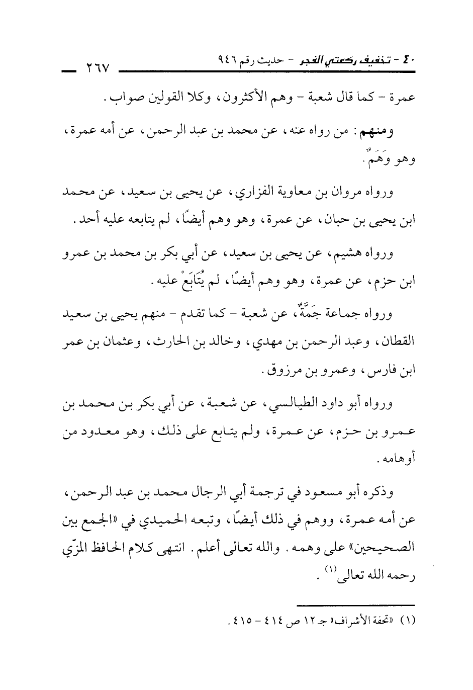 (¬1) "تحفة الأشراف" جـ 12 ص 414 - 415.