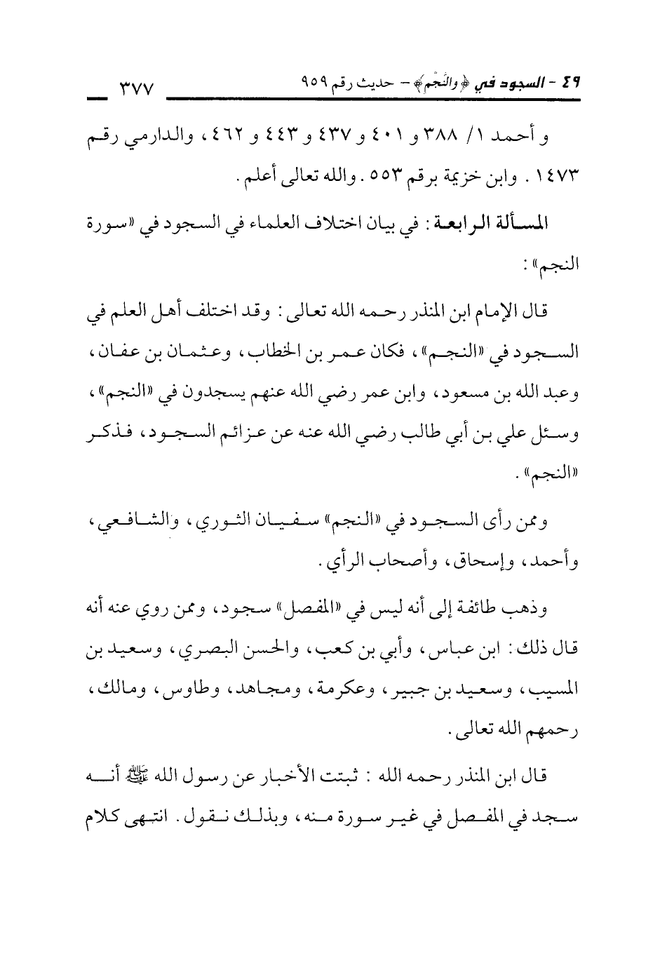 المسألة الرابعة: في بيان اختلاف العلماء في السجود في "سورة النجم":