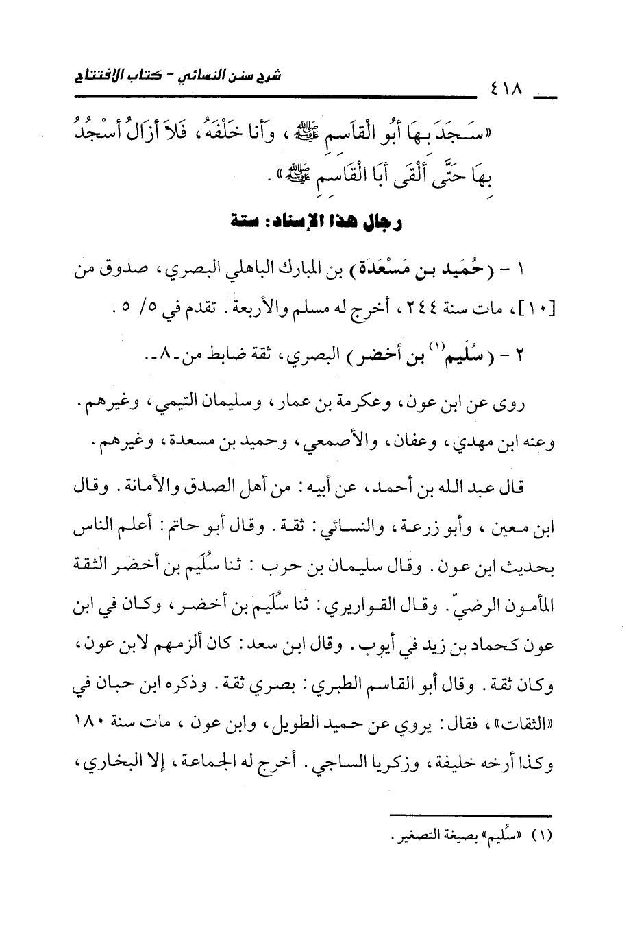 1 - (حُمَيد بن مَسْعَدَة) بن المبارك الباهلي البصري، صدوق من [10]، مات سنة 244، أخرج له مسلم والأربعة. تقدم في 5/ 5.