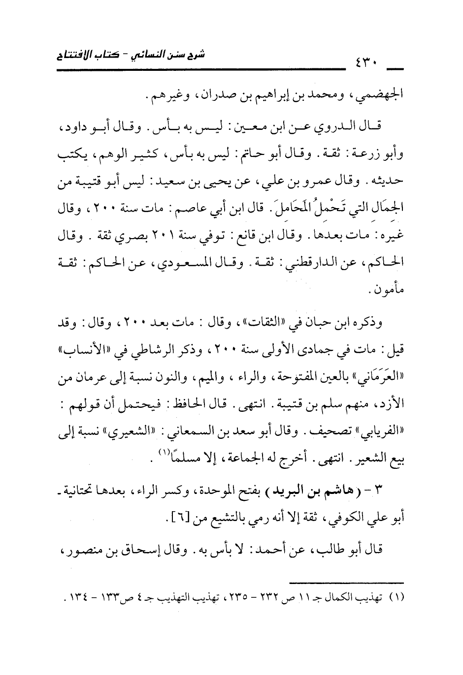 3 - (هاشم بن البريد) بفتح الموحدة، وكسر الراء، بعدها تحتانية - أبو علي الكوفي، ثقة إلا أنه رمي بالتشيع من [6].