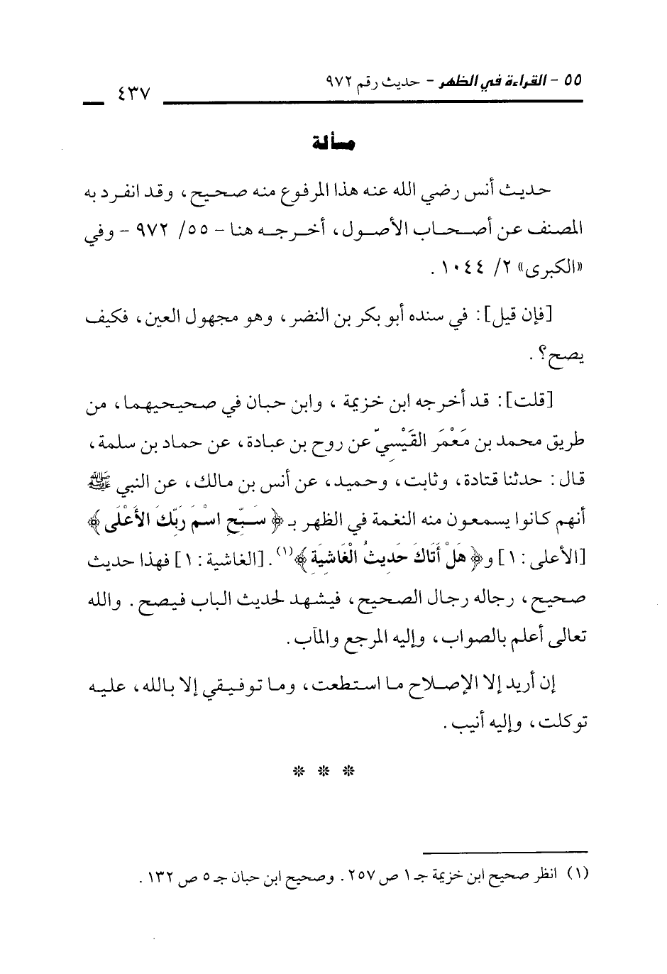 (¬1) انظر صحيح ابن خزيمة جـ 1 ص 257. وصحيح ابن حبان جـ 5 ص 132.
