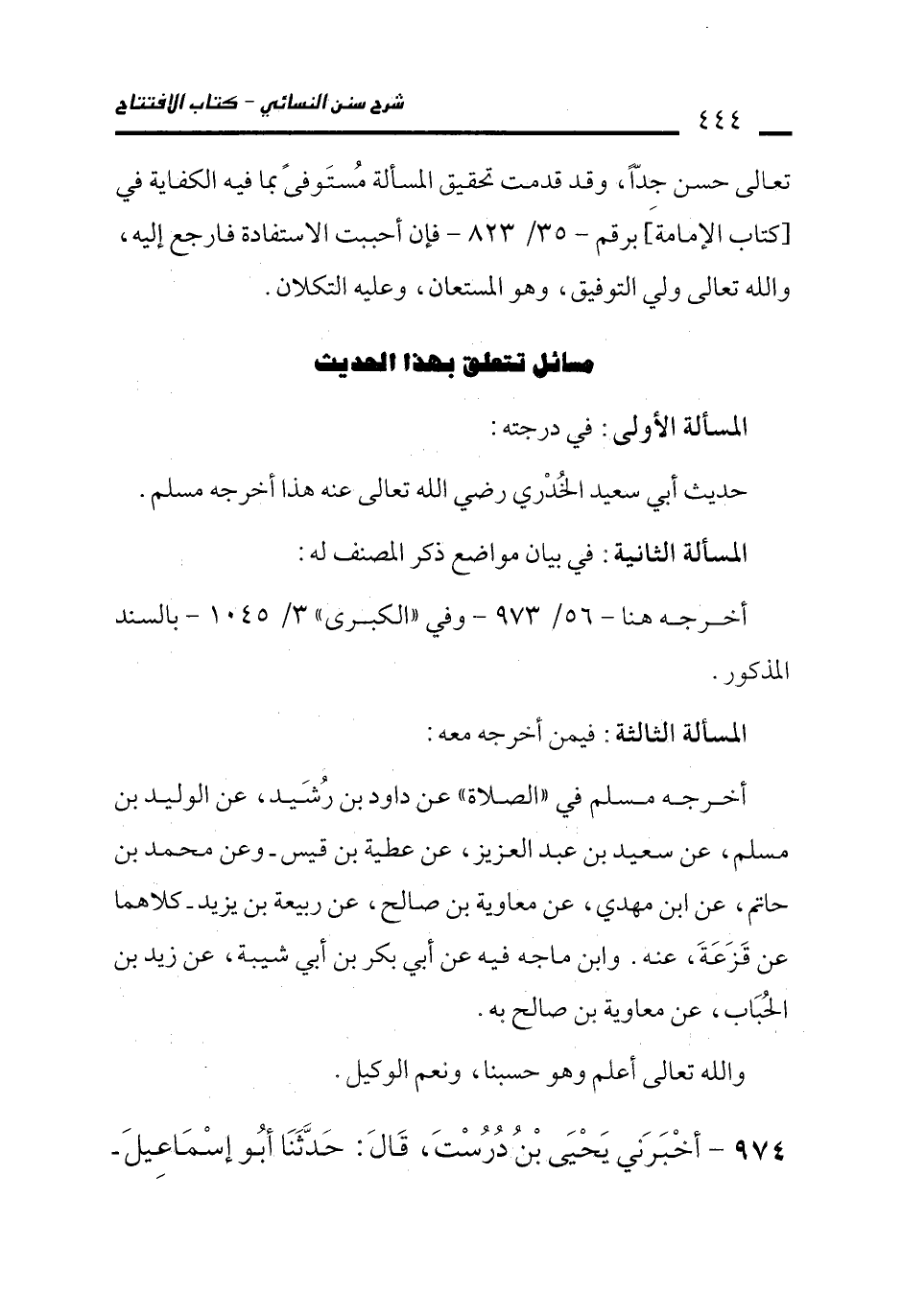 تعالى حسن جدًّا، وقد قدمت تحقيق المسألة مُستَوفىً بما فيه الكفاية في [كتاب الإمامة] برقم -35/ 823 - فإن أحببت الاستفادة فارجع إليه، والله تعالى ولي التوفيق، وهو المستعان، وعليه التكلان.