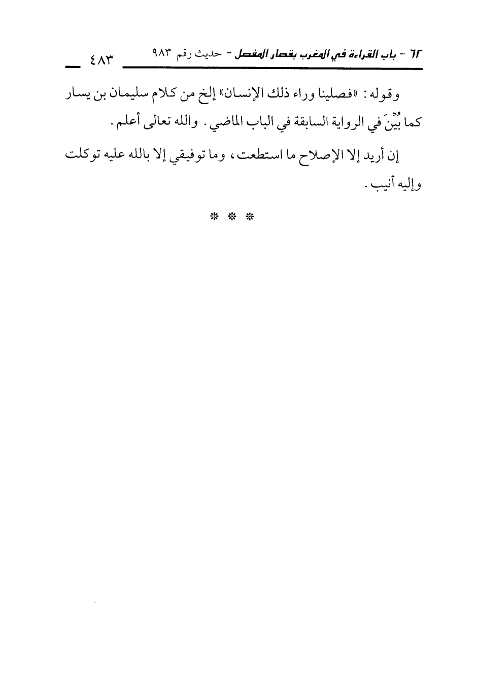 وقوله: "فصلينا وراء ذلك الإنسان" إلخ من كلام سليمان بن يسار كما بُيِّنَ في الرواية السابقة في الباب الماضي. والله تعالى أعلم.
