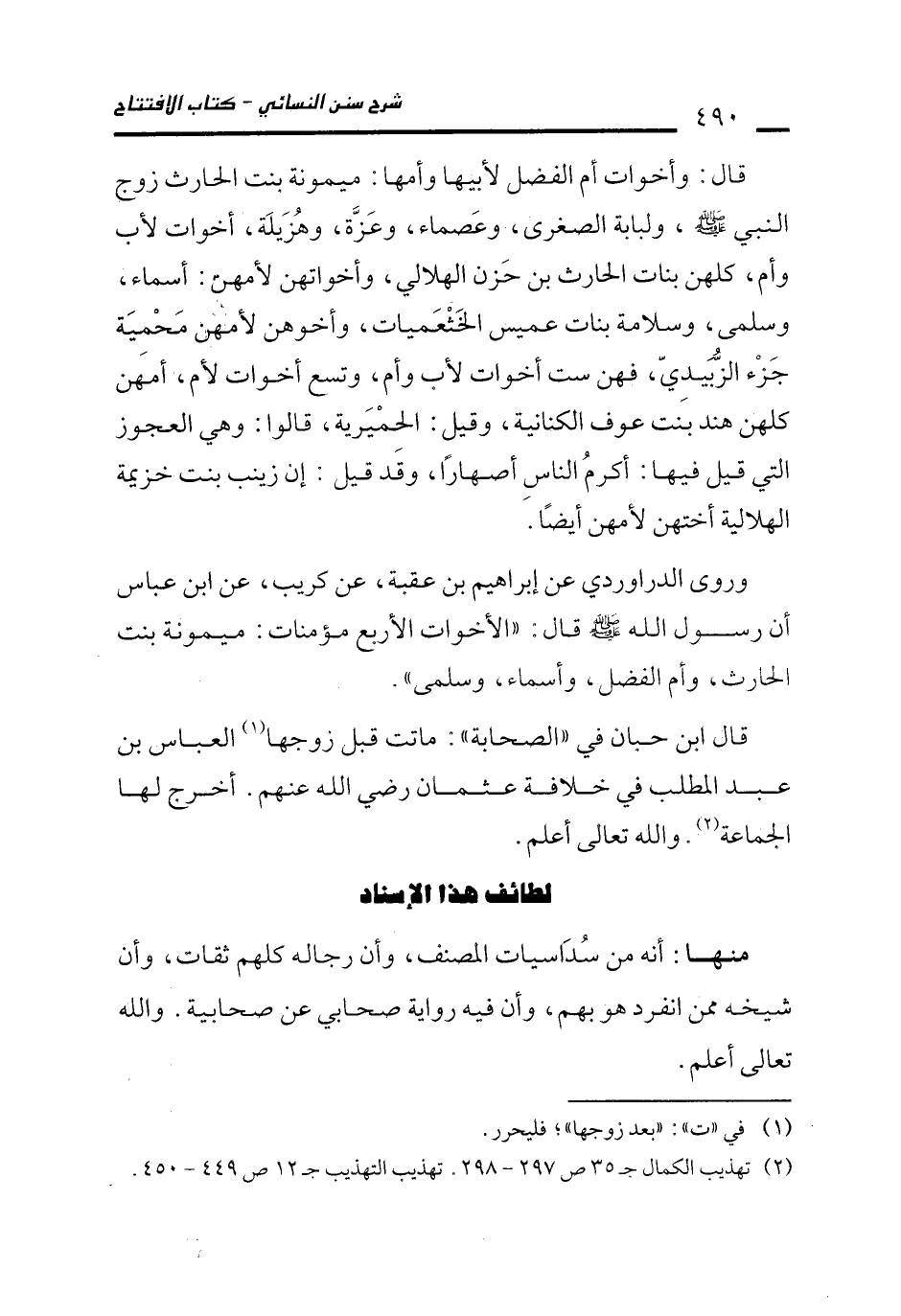 وروى الدراوردي عن إبراهيم بن عقبة، عن كريب، عن ابن عباس أن رسو ل الله - صلى الله عليه وسلم - قال: "الأخوات الأربع مؤمنات: ميمونة بنت الحارث، وأم الفضل, وأسماء، وسلمى".