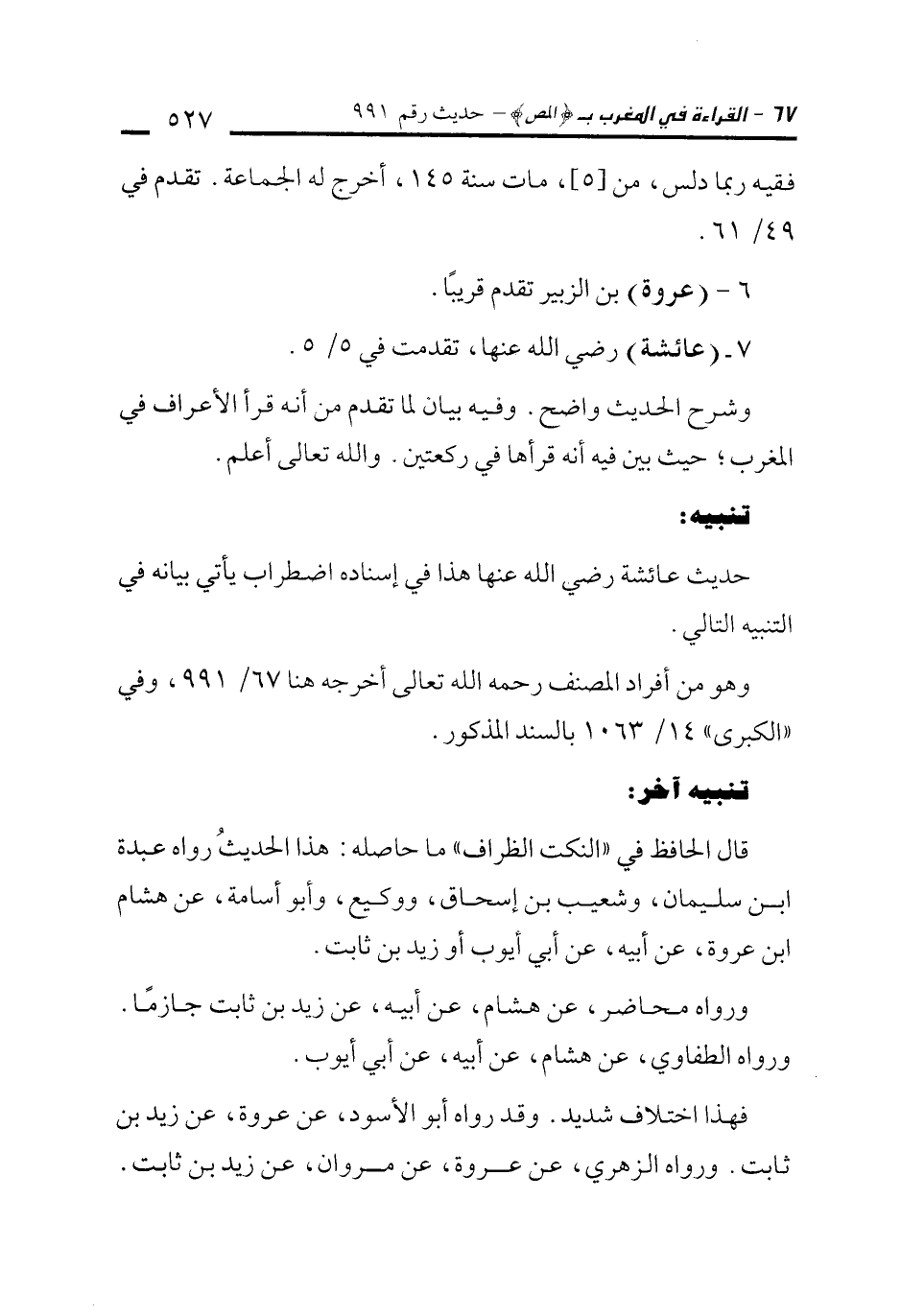 قال الحافظ في "النكت الظراف" ما حاصله: هذا الحديثُ رواه عبدة ابن سليمان، وشعيب بن إسحاق، ووكيع، وأبو أسامة، عن هشام ابن عروة، عن أبيه، عن أبي أيوب أو زيد بن ثابت.