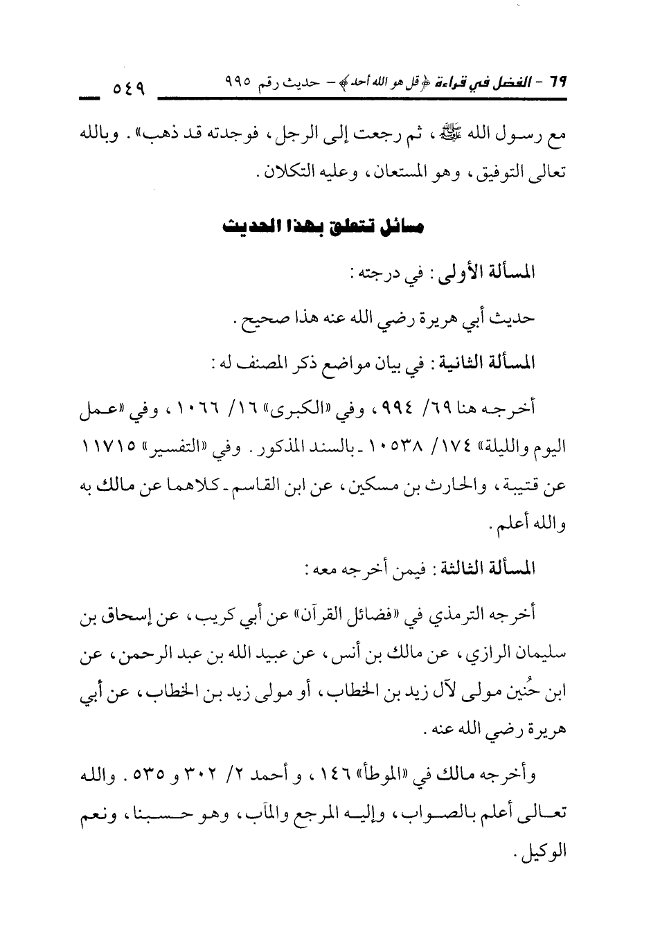مع رسول الله - صلى الله عليه وسلم -، ثم رجعت إلى الرجل، فوجدته قد ذهب". وبالله تعالى التوفيق، وهو المستعان، وعليه التكلان.