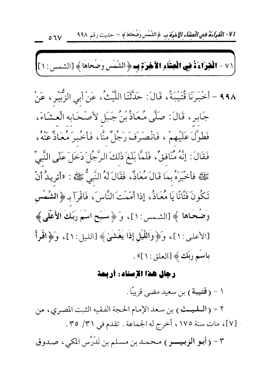 71 - الْقِرَاءَةُ فِي الْعِشَاءِ الآخِرَةِ بِـ {وَالشَّمْسِ وَضُحَاهَا} [الشمس: 1]