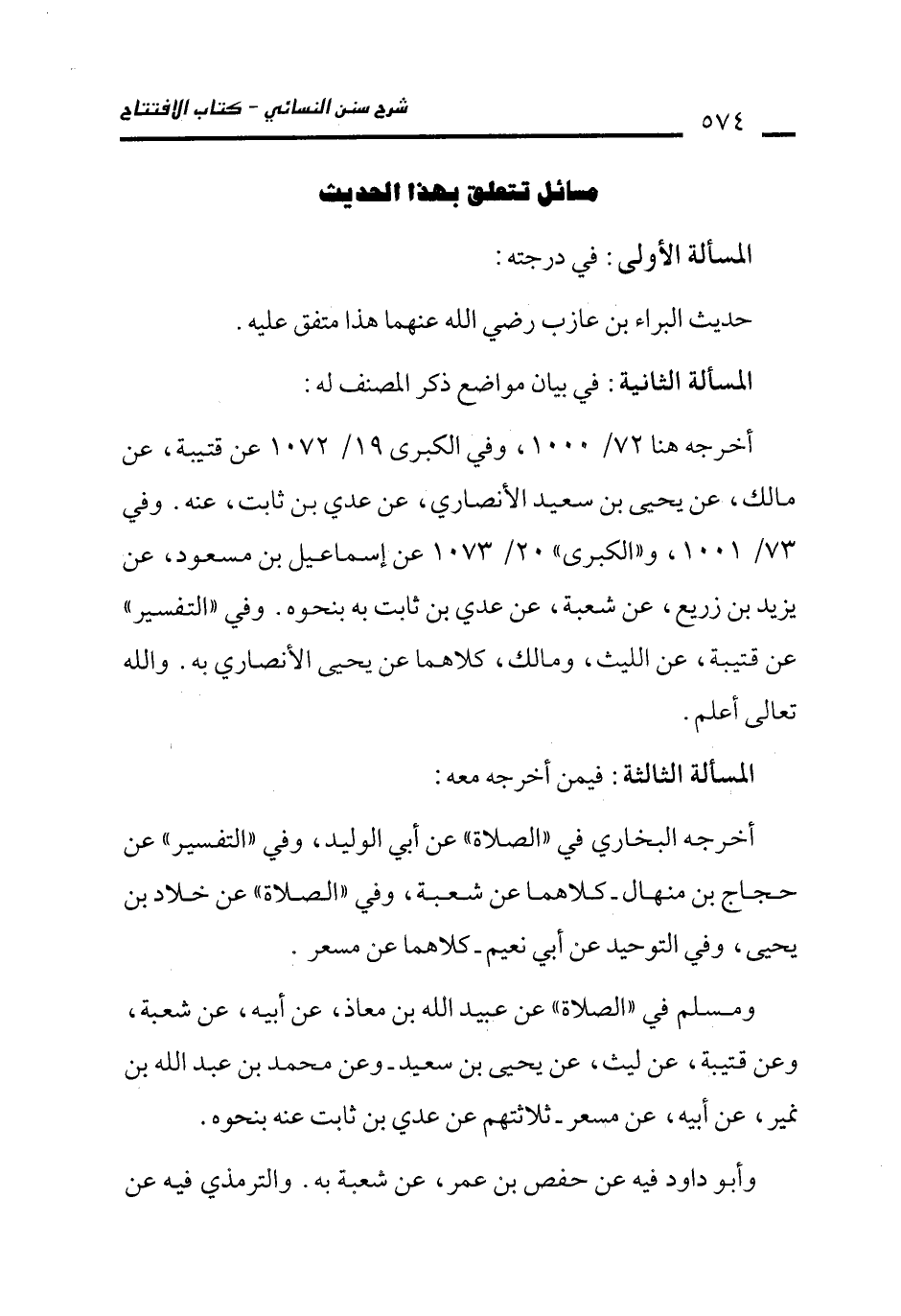 أخرجه هنا 72/ 1000، وفي الكبرى 19/ 1072 من قتيبة، عن مالك، عن يحيى بن سعيد الأنصاري، عن عدي بن ثابت، عنه. وفي 73/ 1001، و"الكبرى" 20/ 1073 عن إسماعيل بن مسعود، عن يزيد بن زريع، من شعبة، عن عدي بن ثابت به بنحوه. وفي "التفسير" عن قتيبة، عن الليث، ومالك، كلاهما عن يحيى الأنصاري به. والله تعالى أعلم.