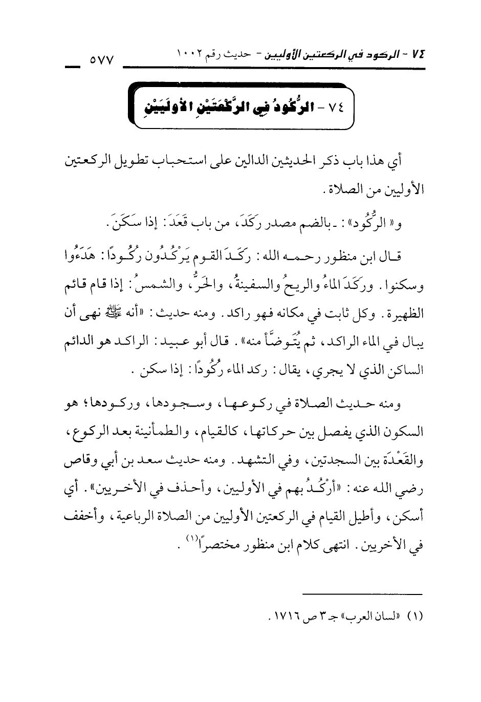 74 - الرُّكُودُ فِي الرَّكْعَتَيْنِ الأولَيَيْنِ
