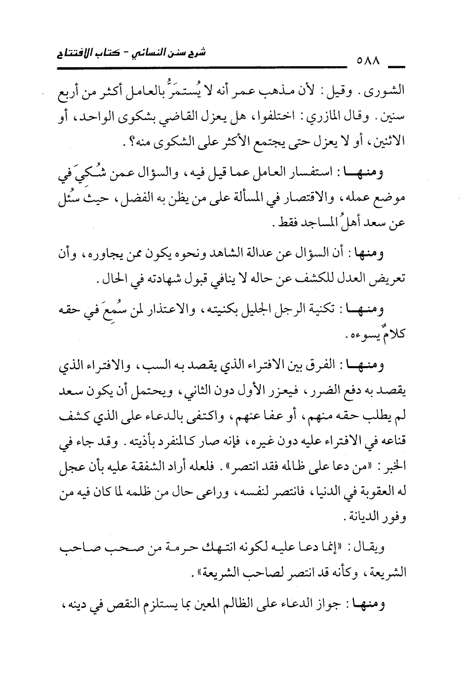 ومنها: الفرق بين الافتراء الذي يقصد به السب، والافتراء الذي يقصد به دفع الضرر، فيعزر الأول دون الثاني، ويحتمل أن يكون سعد لم يطلب حقه منهم، أو عفا عنهم، واكتفى بالدعاء على الذي كشف قناعه في الافتراء عليه دون غيره، فإنه صار كالمنفرد بأذيته. وقد جاء في الخبر: "من دعا على ظالمه فقد انتصر". فلعله أراد الشفقة عليه بأن عجل له العقوبة في الدنيا، فانتصر لنفسه، وراعى حال من ظلمه لما كان فيه من وفور الديانة.