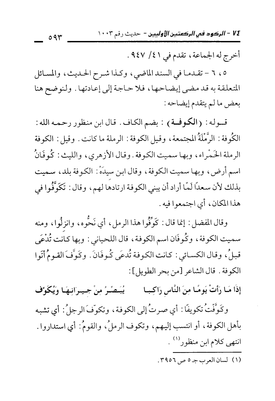 وكَوَّفْتُ تكويفًا: أي صرتُ إلى الكوفة، وتكوّفَ الرجلُ: أي تشبه بأهل الكوفة، أو انتسب إليهم، وتكوف الرملُ، والقومُ: أي استداروا. انتهى كلام ابن منظور (¬1).