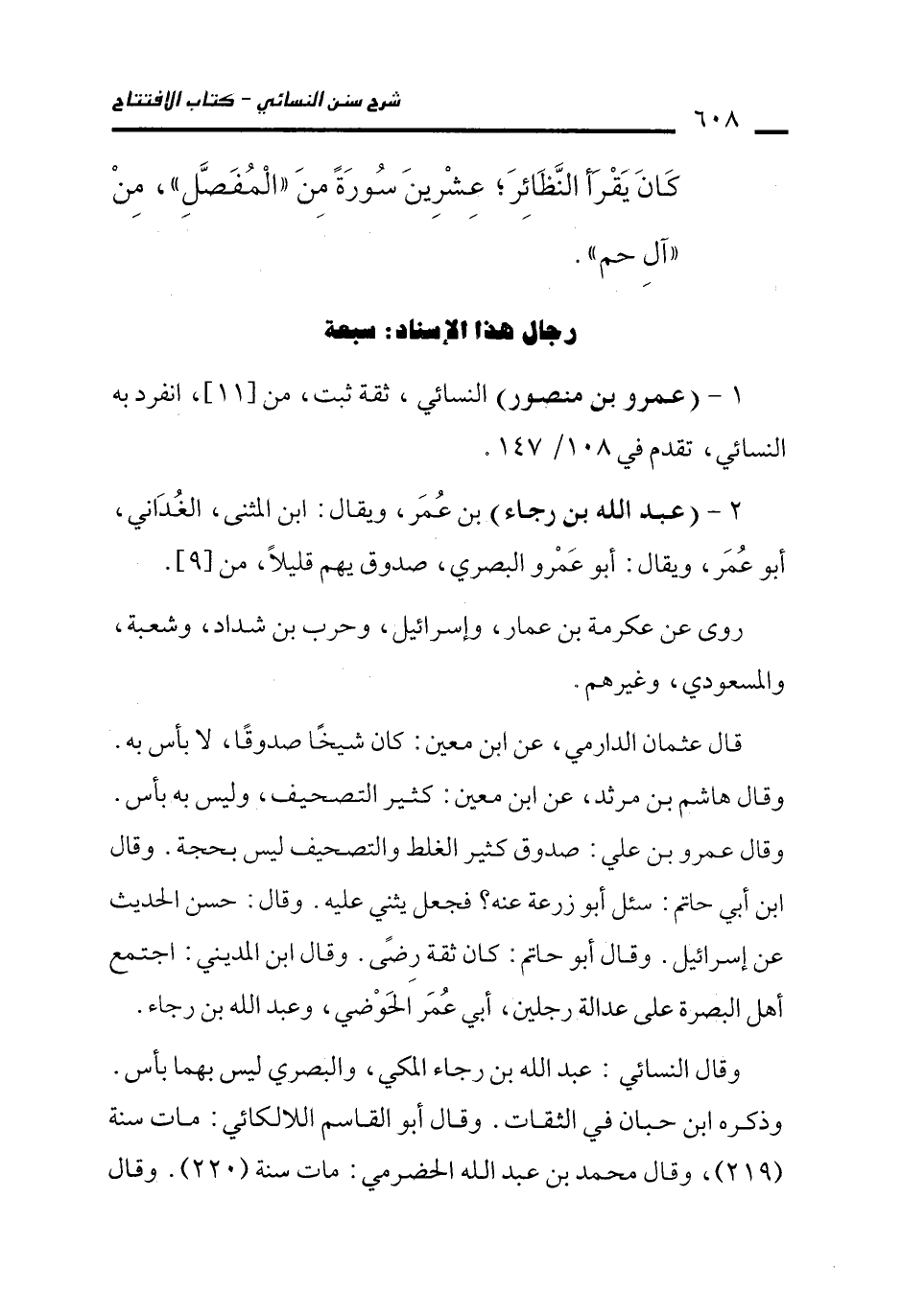 2 - (عبد الله بن رجاء) بن عُمَر، ويقال: ابن المثنى، الغُدَاني، أبو عُمَر، ويقال: أبو عَمْرو البصري، صدوق يهم قليلًا، من [9].