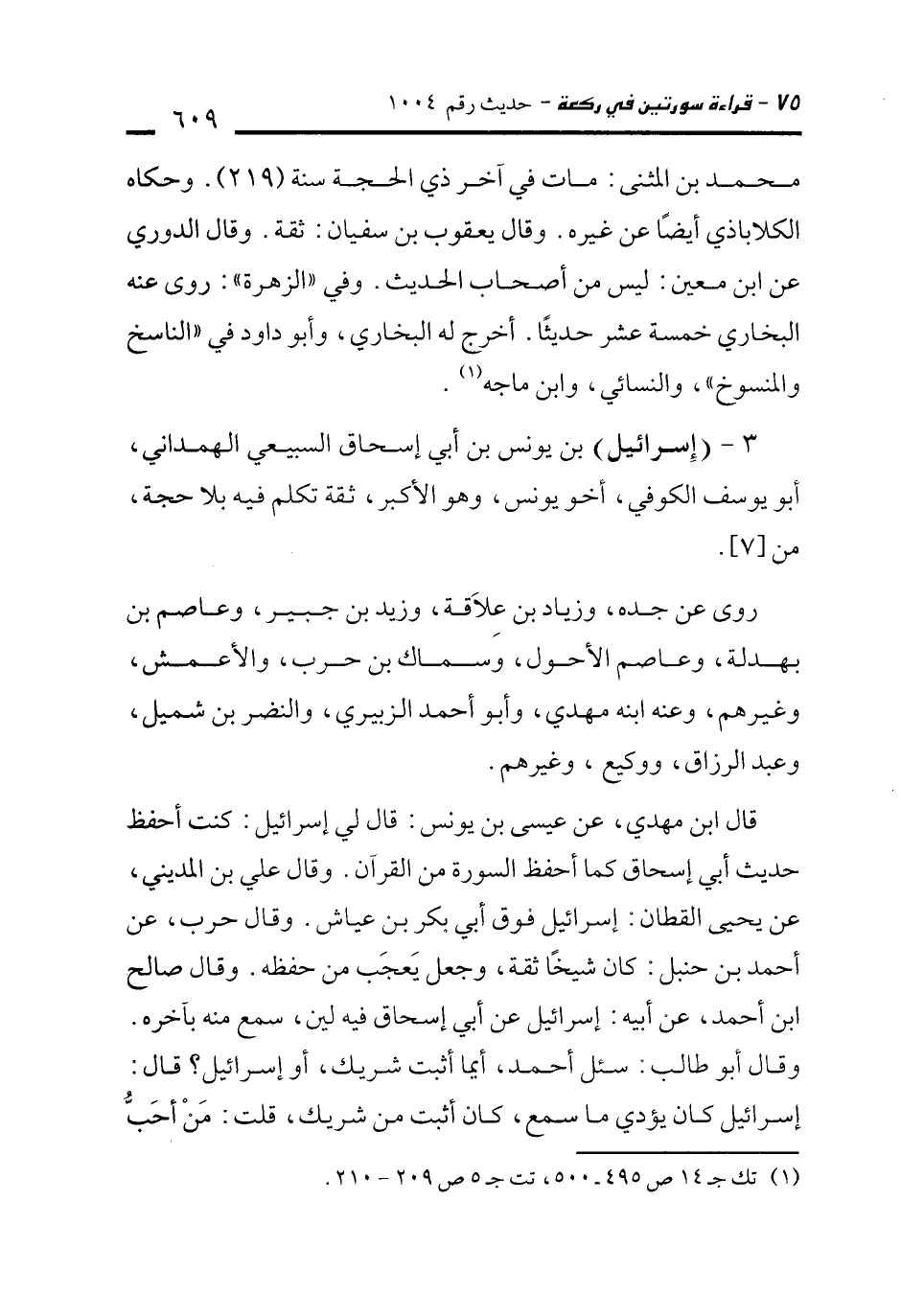 3 - (إِسرائيل) بن يونس بن أبي إسحاق السبيعي الهمداني، أبو يوسف الكوفي، أخو يونس، وهو الأكبر، ثقة تكلم فيه بلا حجة،
