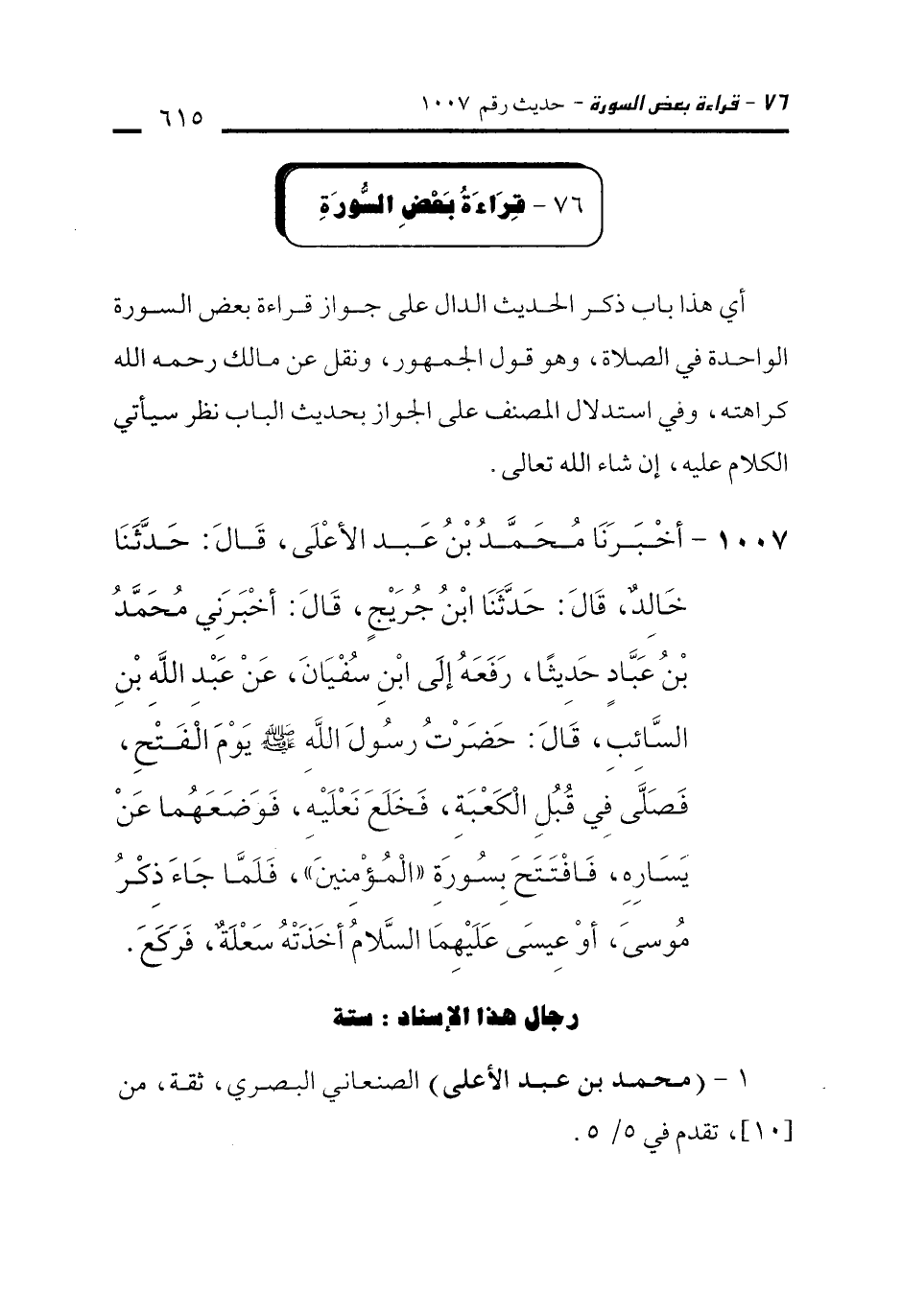 76 - قِرَاءَةُ بَعْضِ السُّورَةِ