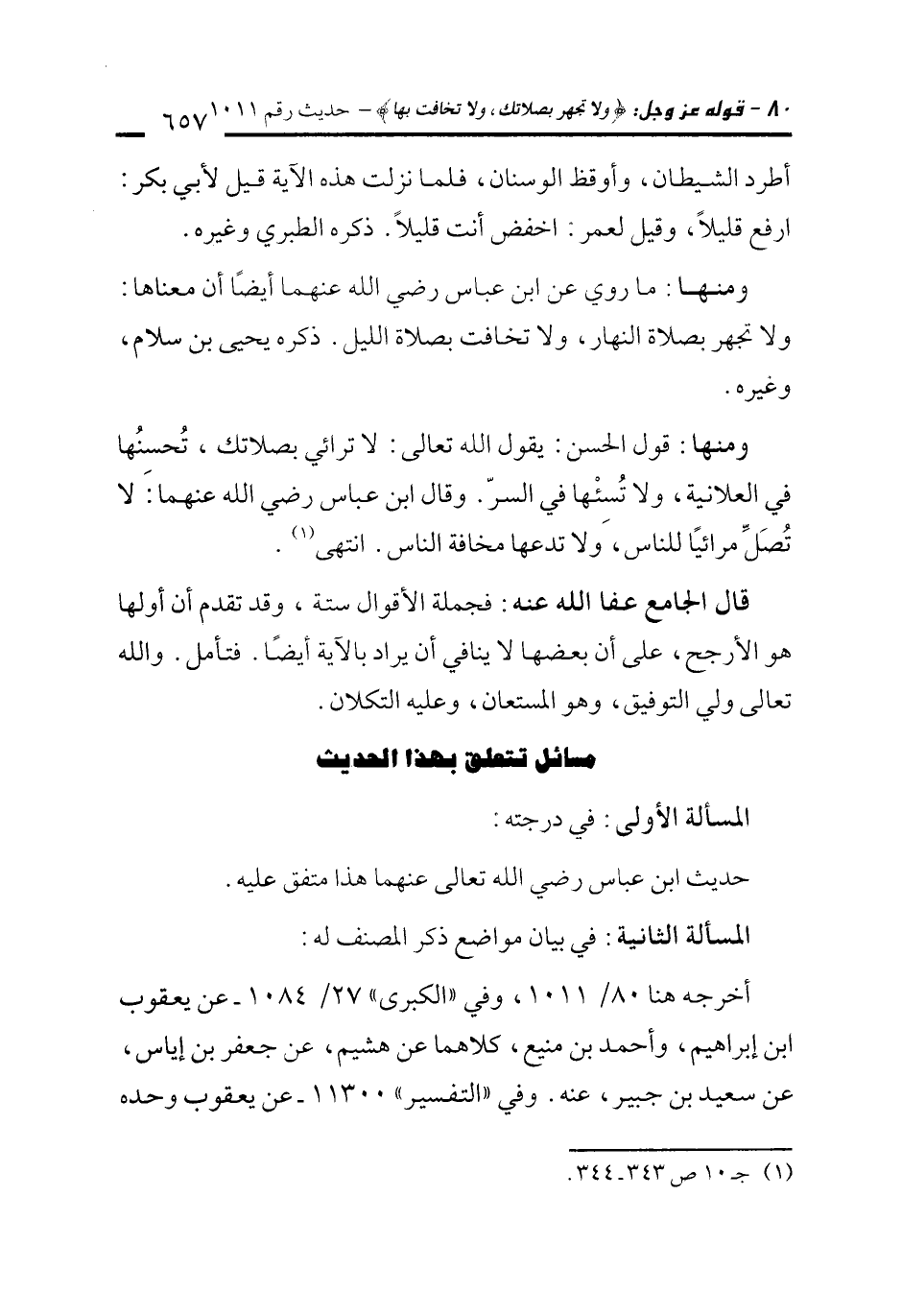 ومنها: ما روي عن ابن عباس رضي الله عنهما أيضًا أن معناها: ولا تجهر بصلاة النهار، ولا تخافت بصلاة الليل. ذكره يحيى بن سلام، وغيره.