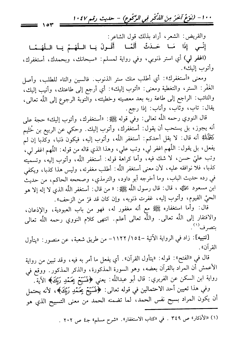 (¬1) "الأذكار" ص 349. في "كتاب الاستغفار". "شرح مسلم" جـ 4 ص 202.
