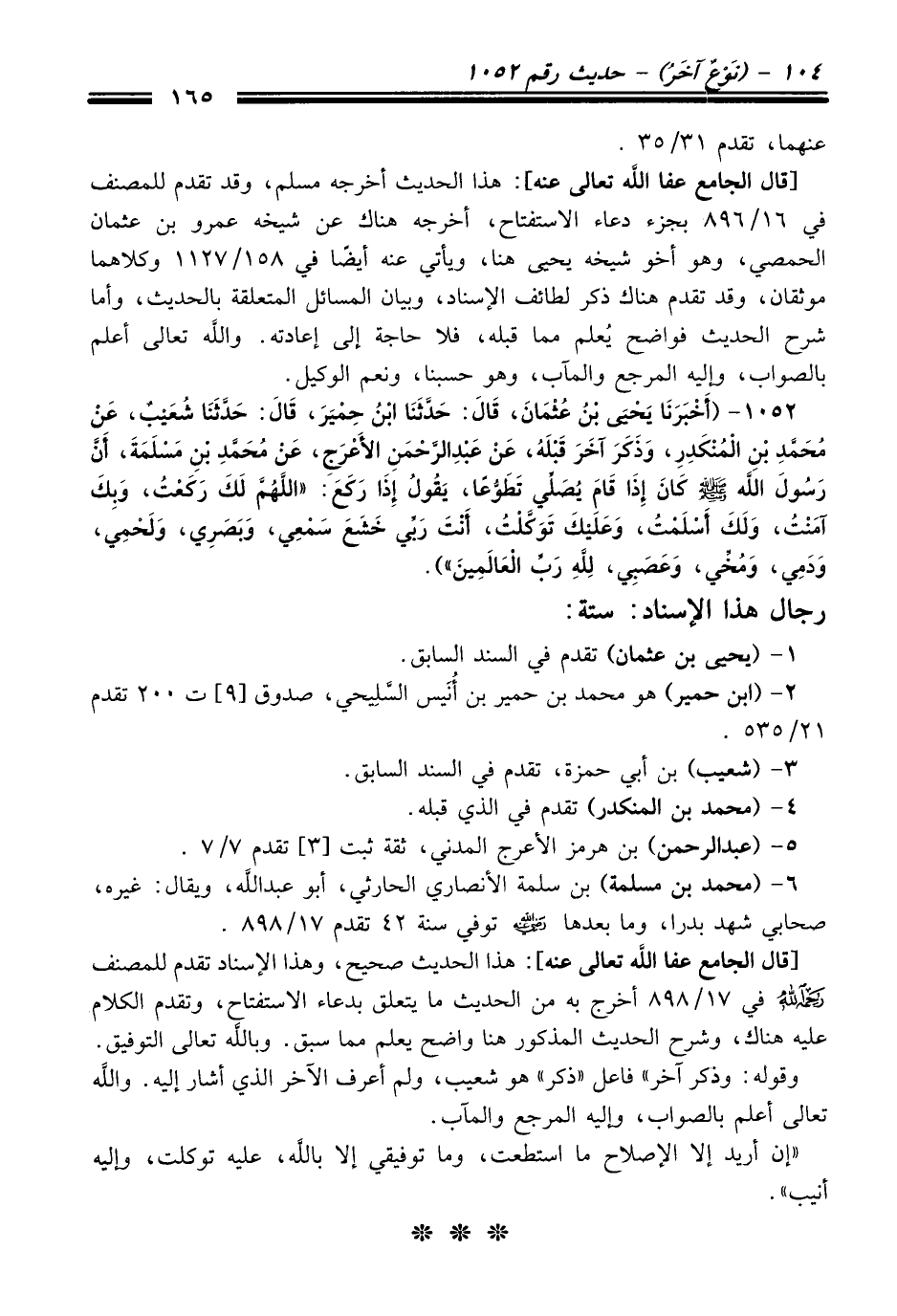 [قال الجامع عفا الله تعالى عنه]: هذا الحديث أخرجه مسلم، وقد تقدم للمصنف في 16/ 896 بجزء دعاء الاستفتاح، أخرجه هناك عن شيخه عمرو بن عثمان الحمصي، وهو أخو شيخه يحيي هنا، ويأتي عنه أيضًا في 158/ 1127 وكلاهما موثقان، وقد تقدم هناك ذكر لطائف الإسناد، وبيان المسائل المتعلقة بالحديث، وأما شرح الحديث فواضح يُعلم مما قبله، فلا حاجة إلى إعادته. والله تعالى أعلم بالصواب، وإليه المرجع والمآب، وهو حسبنا، ونعم الوكيل.