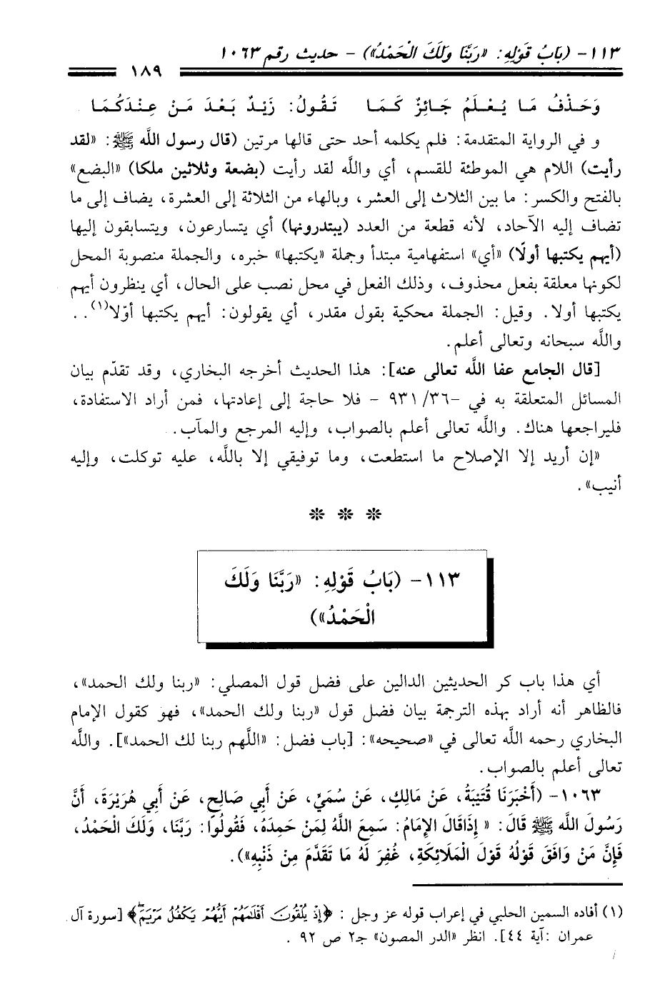 113 - (بَابُ قَوْلِهِ: "رَبَّنَا وَلَكَ الْحَمْدُ")