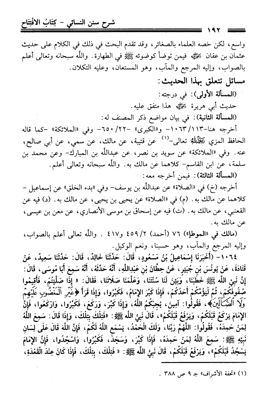 أخرجه هنا -113/ 1063 - و"الكبرى" -22/ 650 - وفي "الملائكة" -كما قاله الحافظ المزي -رحمه الله- تعالى- (¬1) عن قتيبة، عن مالك، عن سمي، عن أبي صالح، عنه. وفي "الملائكة" عن سويد بن نصر، عن عبد الله بن المبارك- وعن محمد بن سلمة، عن ابن القاسم- كلاهما عن مالك به. والله سبحانه وتعالى أعلم.