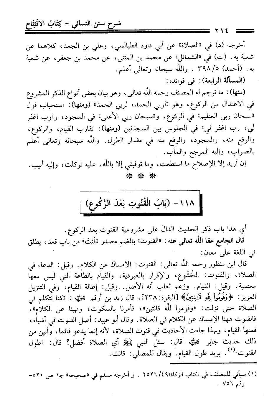 116 - (بَابُ الْقُنُوتِ بَعْد الرُّكُوعِ)