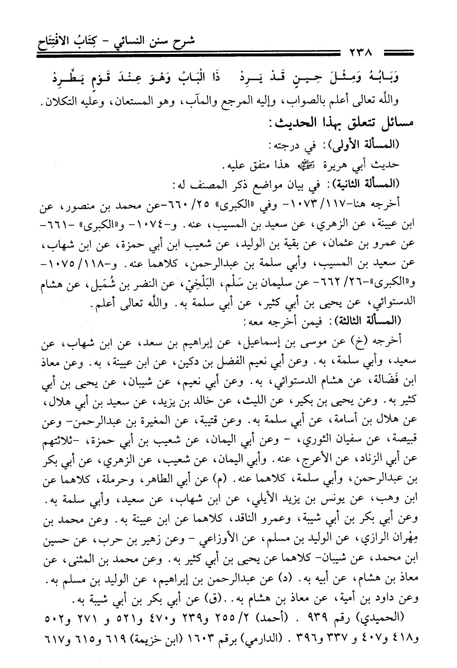 (الحميدي) رقم 939. (أحمد) 2/ 255 و 239 و 470 و 521 و 271 و502 و 418 و 407 و 337 و 396. (الدارمي) برقم 1603 (ابن خزيمة) 619 و 615 و 617