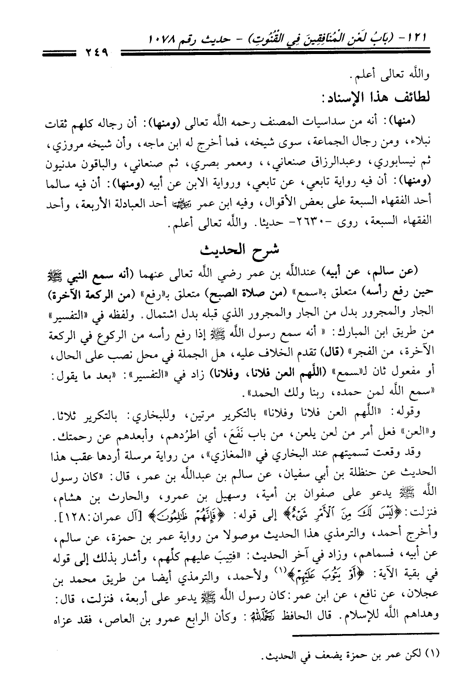 وقد وقعت تسميتهم عند البخاري في "المغازي"، من رواية مرسلة أردها عقب هذا الحديث عن حنظلة بن أبي سفيان، عن سالم بن عبد الله بن عمر، قال: "كان رسول الله - صلى الله عليه وسلم - يدعو على صفوان بن أمية، وسهيل بن عمرو، والحارث بن هشام، فنزلت: {لَيْسَ لَكَ مِنَ الْأَمْرِ شَيْءٌ} إلى قوله: {فَإِنَّهُمْ ظَالِمُونَ} [آل عمران: 128].