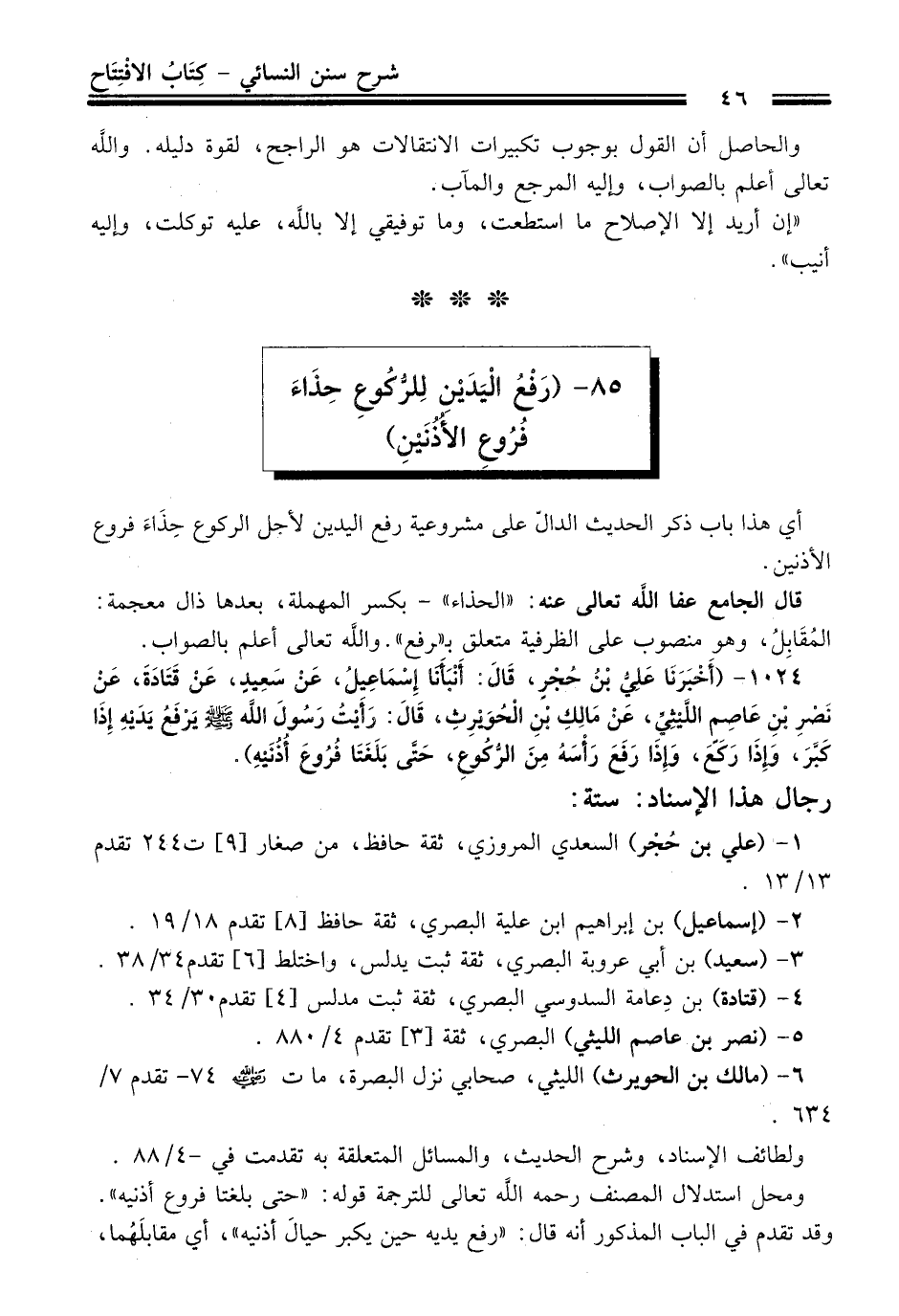 85 - (رَفْعُ الْيَدَيْنِ لِلرُّكوعِ حِذَاءَ فُرُوعِ الأُذُنَيْنِ)