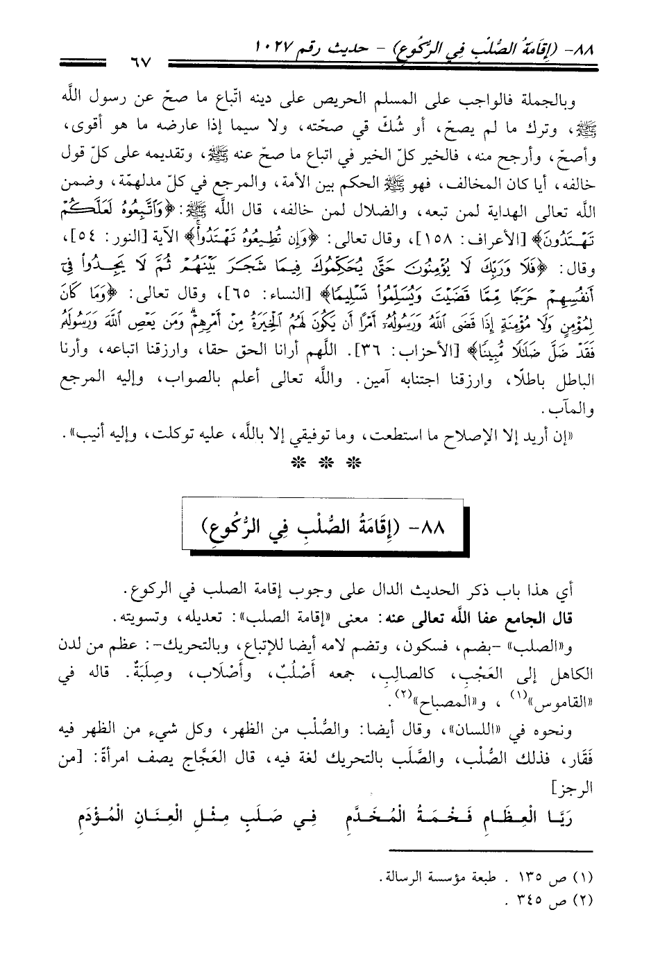88 - (إِقَامَةُ الصُّلْبِ فِي الرُّكُوعِ)