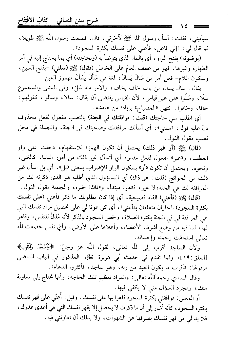 (قال) - صلى الله عليه وسلم - (فأعني) الفاء فصيحية، أي إذا كان مطلوبك ما ذكر فأعني (على نفسك بكثرة السجود) الجاران متعلقان بـ"أعني"، أي كن عونا لي على تحصيل مراد نفسك التي هي المرافقة لي في الجنة بكثرة الصلاة، وخص السجود بالذكر لأنه مُذلٌّ للنفس، وقاهر لها، لما فيه من وضع أشرف الأعضاء، وأعلاها على الأرض، وأيّ نفس خضعت لله تعالى استحقت رحمته وإحسانه.