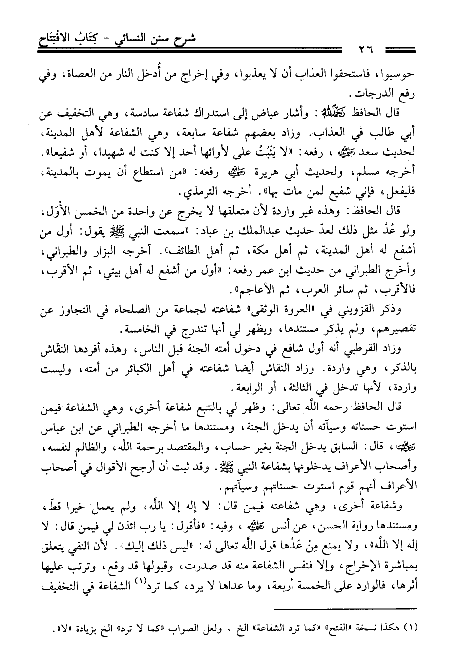 (¬1) هكذا نسخة "الفتح" "كما ترد الشفاعة" الخ، ولعل الصواب "كما لا ترد" الخ بزيادة "لا".