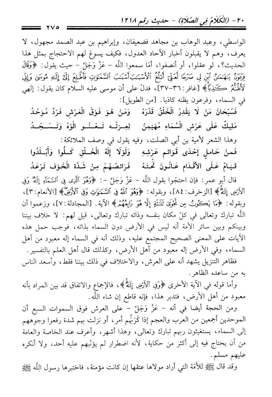 مَلِيكٌ عَلَى عَرْشِ الْسَّمَاءِ مُهَيْمِنُ ... لِعِزتَّه تَعْنُو الْوُهُ وَتَسْجُدُ