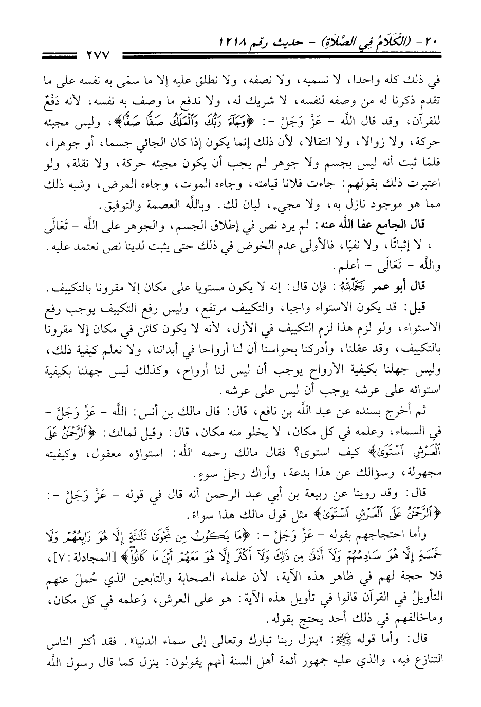 ثم أخرج بسنده عن عبد الله بن نافع، قال: قال مالك بن أنس: الله -عَزَّ وَجَلَّ- في السماء، وعلمه في كل مكان، لا يخلو منه مكان، قال: وقيل لمالك: {الرَّحْمَنُ عَلَى الْعَرْشِ اسْتَوَى} كيف استوى؟ فقال مالك رحمه الله: استواؤه معقول، وكيفيته مجهولة، وسؤالك عن هذا بدعة، وأراك رجلَ سوءٍ.