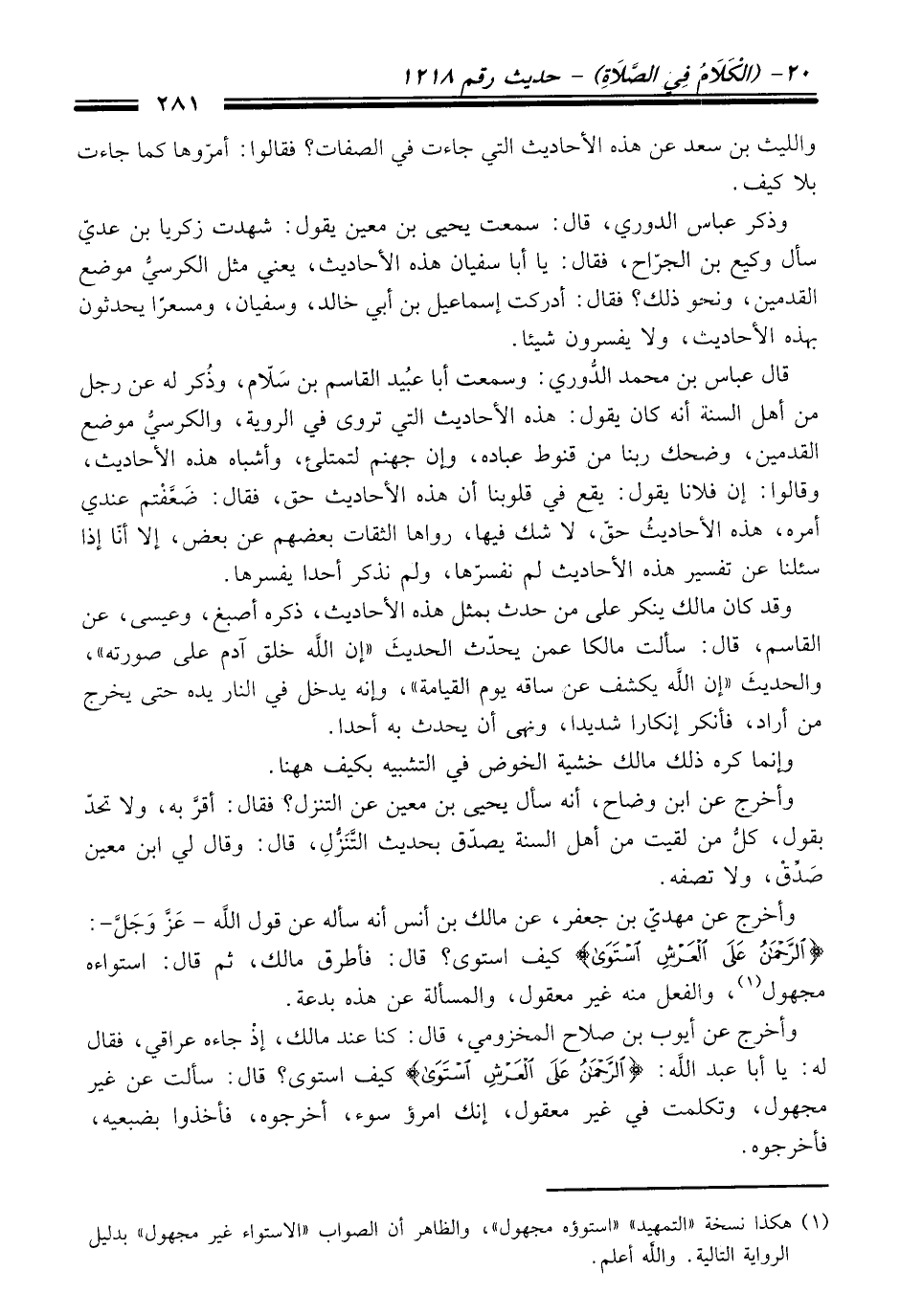 (¬1) هكذا نسخة "التمهيد" "استوؤه مجهول"، والظاهر أن الصواب "الاستواء غير مجهول" بدليل الرواية التالية. والله أعلم.
