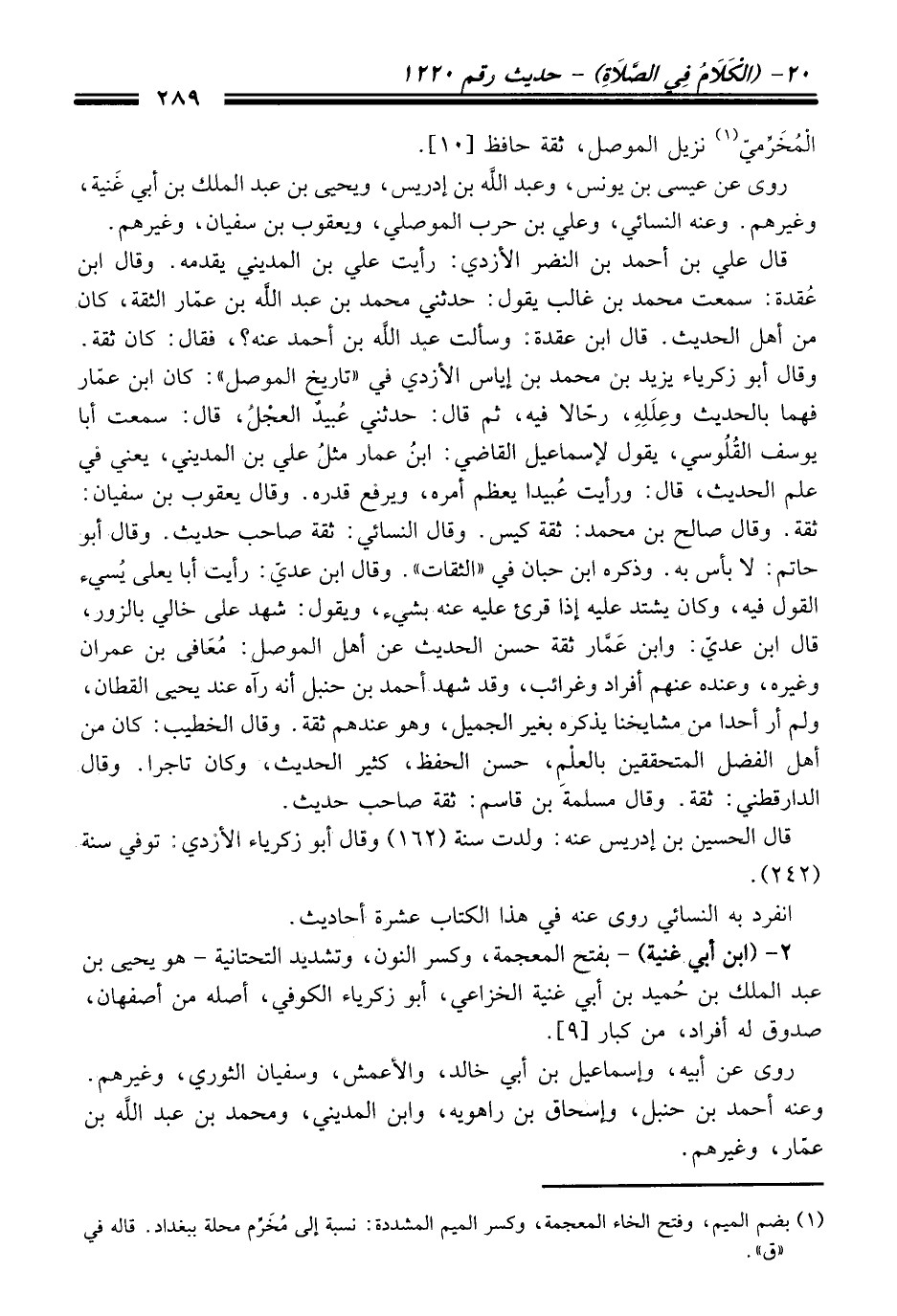 (¬1) بضم الميم، وفتح الخاء المعجمة، وكسر الميم المشددة: نسبة إلى مُخَرِّم محلة ببغداد. قاله في "ق".