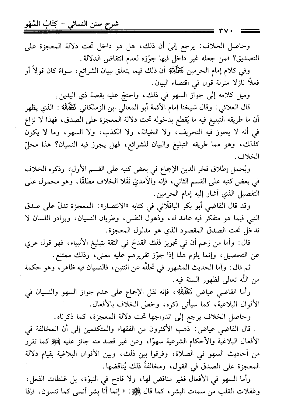 وميل كلامه إلى جواز السهو في ذلك، واحتجّ عليه بقصة ذي اليدين.