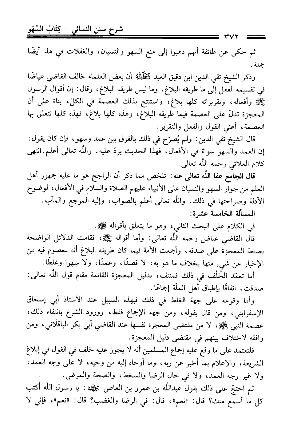 ثم حكى عن طائفة أنهم ذهبوا إلى منع السهو والنسيان، والغفلات في هذا أيضًا جملة.