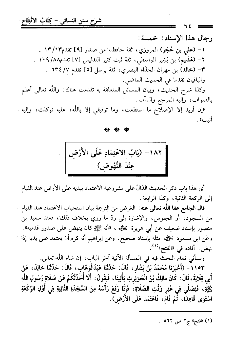 182 - (بَابُ الاعْتِمَادِ عَلَى الأَرضِ عِنْدَ النُّهُوضِ)