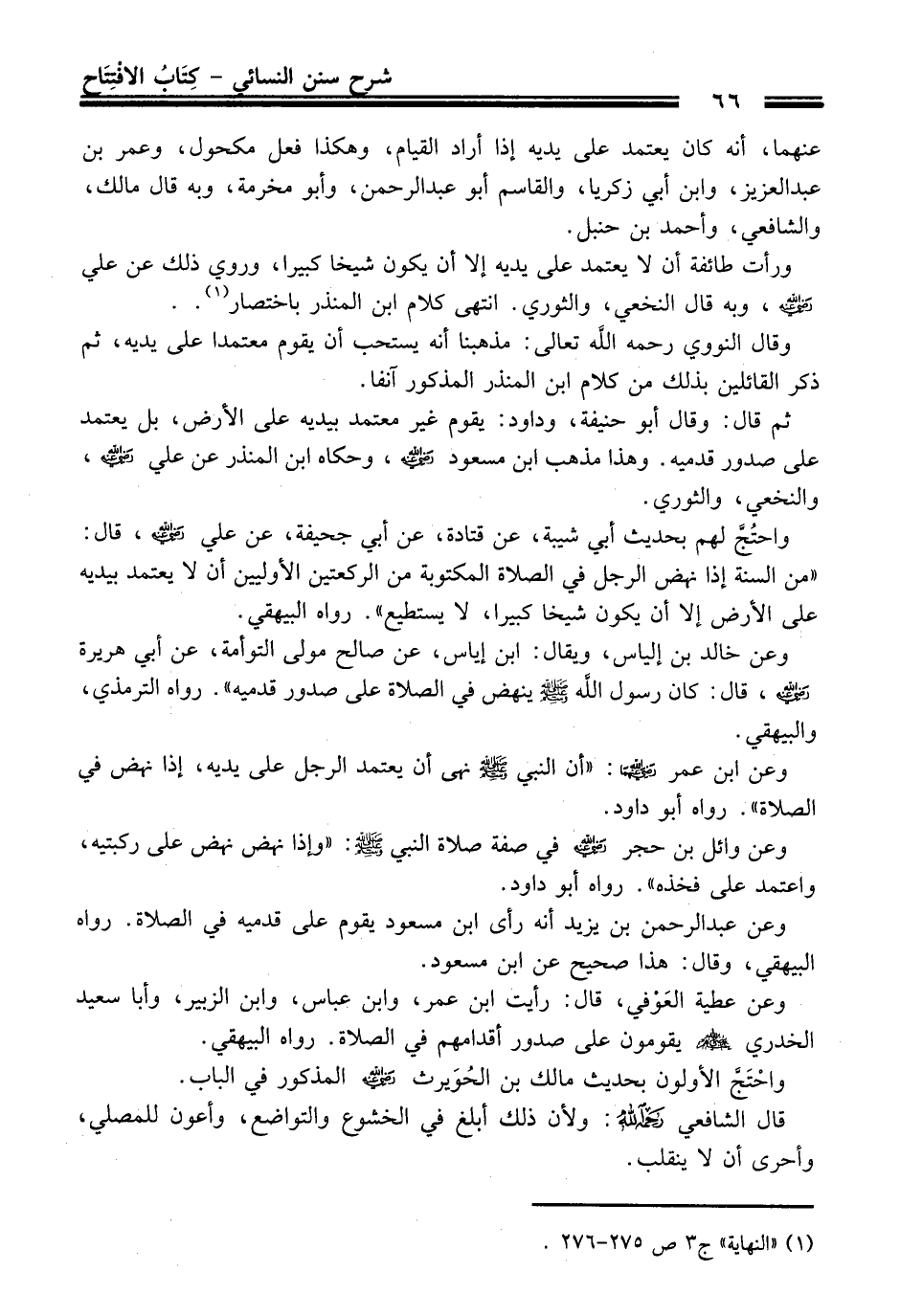ورأت طائفة أن لا يعتمد على يديه إلا أن يكون شيخا كبيرا، وروي ذلك عن علي - رضي الله عنه -، وبه قال النخعي، والثوري. انتهى كلام ابن المنذر باختصار (¬1). .