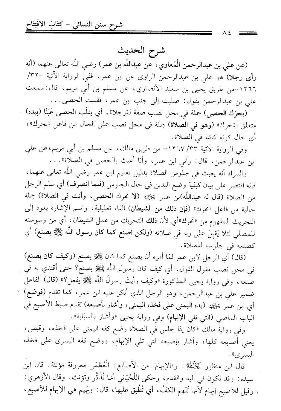 وفي الرواية الآتية 33/ 1267 - من طريق مالك، عن مسلم بن أبي مريم، عن علي ابن عبد الرحمن، قال رآني ابن عمر، وأنا أعبث بالحصى في الصلاة". . .