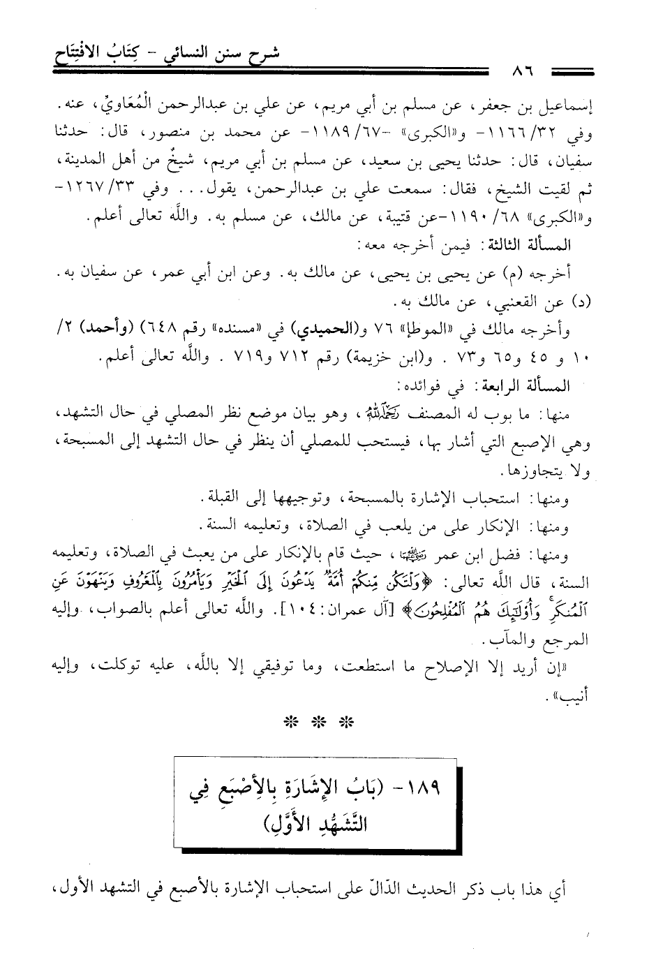 189 - (بَابُ الإِشَارَةِ بِالأصْبَعِ فِي التَّشَهدِ الأَوَّلِ)