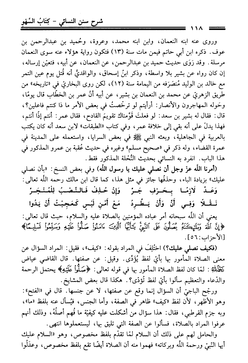 ورجّح الباجيّ أن السؤال إنما وقع عن صفتها، لا عن جنسها. قال في "الفتح": وهو الأظهر، لأن لفظ "كيف" ظاهر في الصفة، وأما الجنس، فيُسأل عنه بلفظ "ما"، وبه جزم القرطبي، فقال: هذا سؤال من أشكلت عليه كيفيّة ما فُهم أصلُهُ، وذلك أنهم عرفوا المراد بالصلاة، فسألوا عن الصفة التي تليق بها، ليستعملوها انتهى.