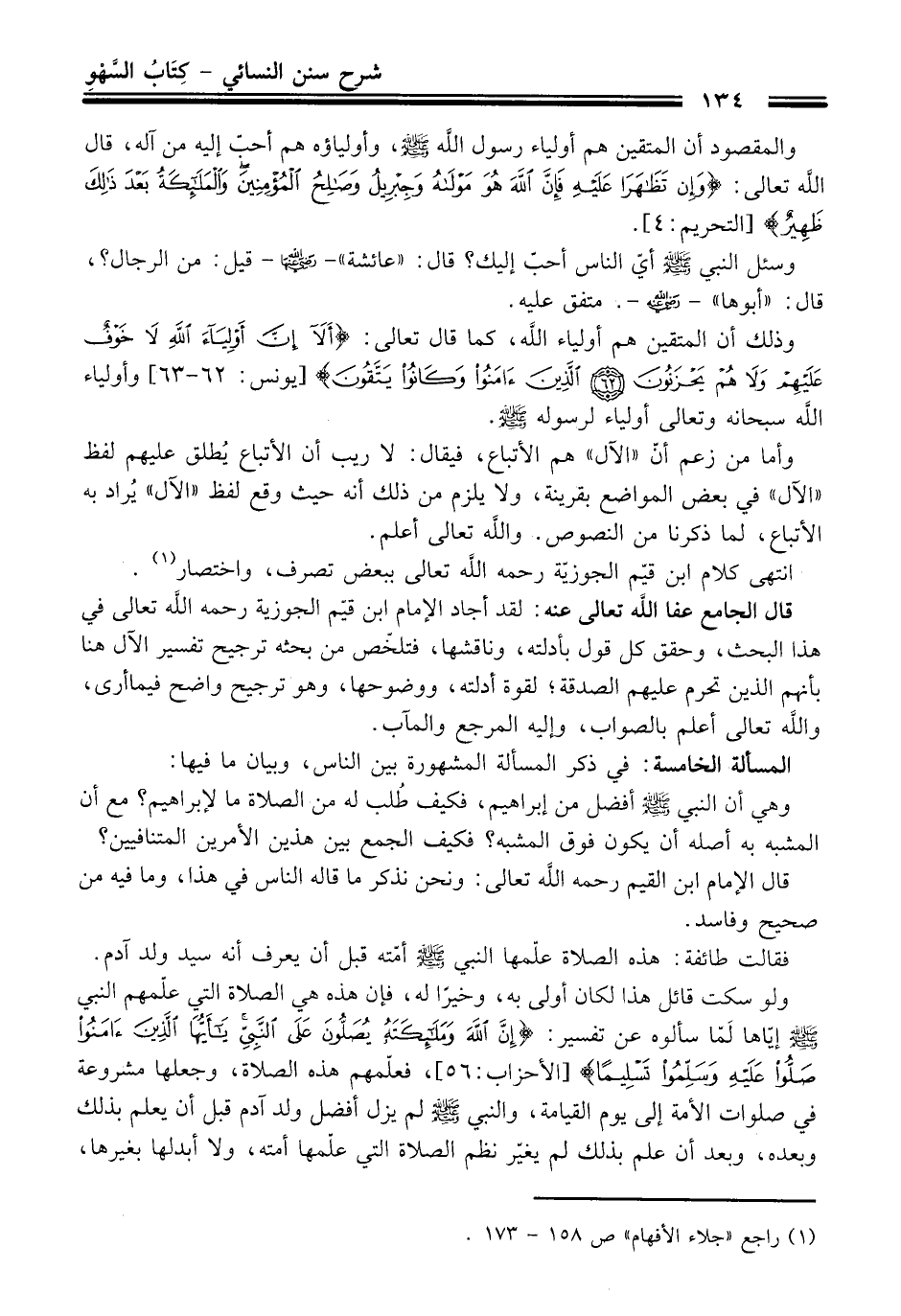 قال الجامع عفا الله تعالى عنه: لقد أجاد الإمام ابن قيّم الجوزية رحمه الله تعالى في هذا البحث، وحقق كل قول بأدلته، وناقشها، فتلخّص من بحثه ترجيح تفسير الآل هنا بأنهم الذين تحرم عليهم الصدقة؛ لقوة أدلته، ووضوحها، وهو ترجيح واضح فيما أرى، والله تعالى أعلم بالصواب، وإليه المرجع والمآب.