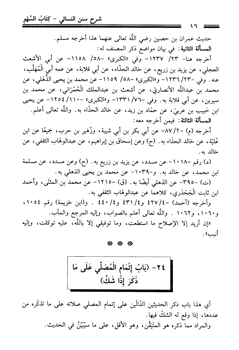 أخرجه هنا -23/ 1237 - وفي "الكبرى" -58/ 1158 - عن أبي الأشعث العجلي، عن يزيد بن زريع، عن خالد الحذاء، عن أبي قلابة، عن عمه أبي الْمُهَلَّب، عنه. وفي -23/ 1236 - و"الكبرى" -58/ 1159 - عن محمد بن يحيى الذُّهْلي، عن محمد بن عبد الله الأنصاريّ، عن أشعث بن عبد الملك الْحُمْرَاني، عن محمد بن سيرين، عن أبي قلابة به. وفي -76/ 1331 - و"الكبرى" -110/ 1254 - عن يحيى ابن حبيب بن عربيّ، عن حمّاد بن زيد، عن خالد الحذّاء به. والله تعالى أعلم.